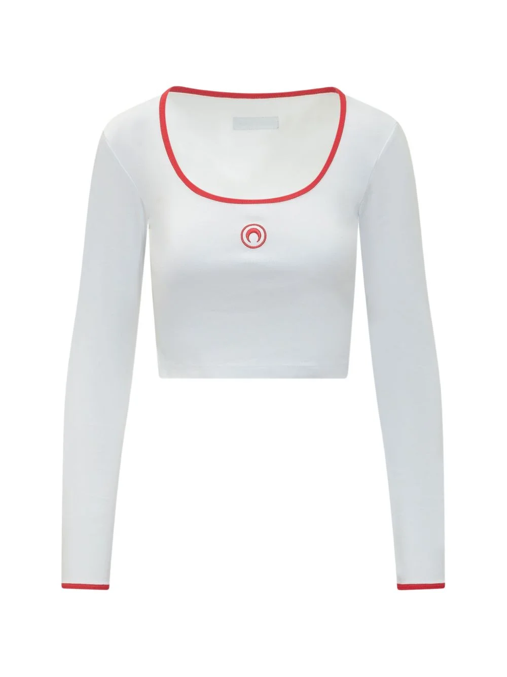 roundneck t-shirt Highlights - Whi - Round neck - Long sleeves - Crescent moon motif - Red trim Imported Composition Organic Cotton 100%