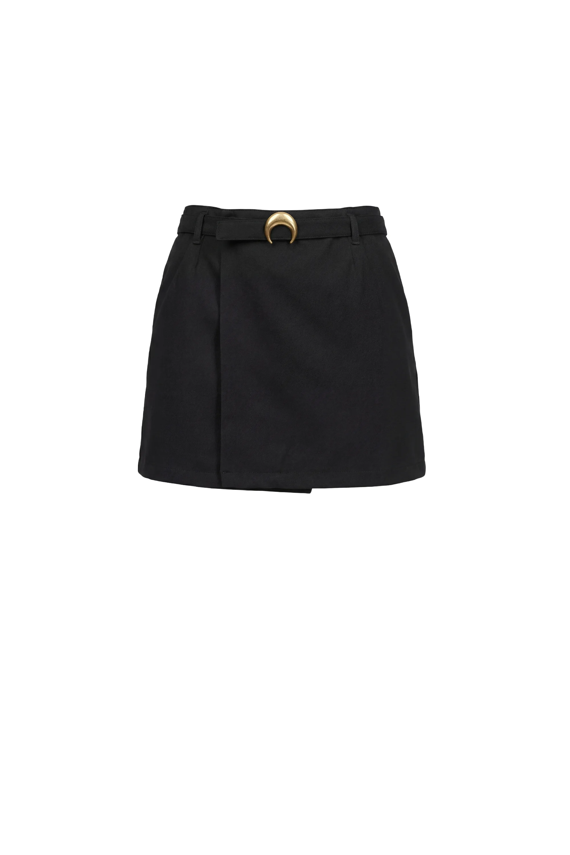 Medium-waisted fitted mini skirt Product Detail - Invisible zipper on the side - Belt loops - Moon belt buckle - Integrated belt with moon buckle on front Composition and Traceability Product details page relating to environmental qualities or characteristics WSK115A_CWOV0070_BK99_BLACK Composition: 65% Polyester, 35% Cotton - Lining: 100% Cotton Traceability: Weaving, Dyeing, Manufacturing: Italy