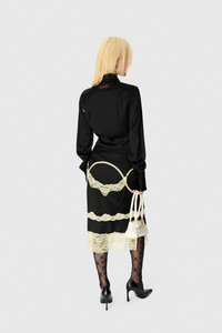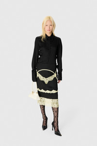 Classic medium-waisted midi skirt with a midi length Product Detail - Invisible zipper with crochet on the side - Invisible zip side closure - Dyed crochet details - Marine serre embroidery - Logo patch Composition and Traceability Product details page relating to environmental qualities or characteristics WSK121A CWOV0056 BK99 BLACK Composition: Main Fabric: 100% Viscose - Second Fabric: 100% Polyamide - Third Fabric: 100% Polyamide - Fourth Fabric: 45% Polyamide, 55% Rayonne - Fifth Fabric: 45% Polyamide, 55% Rayonne Traceability: Weaving/Dyeing: Italy Manufacturing: Romania