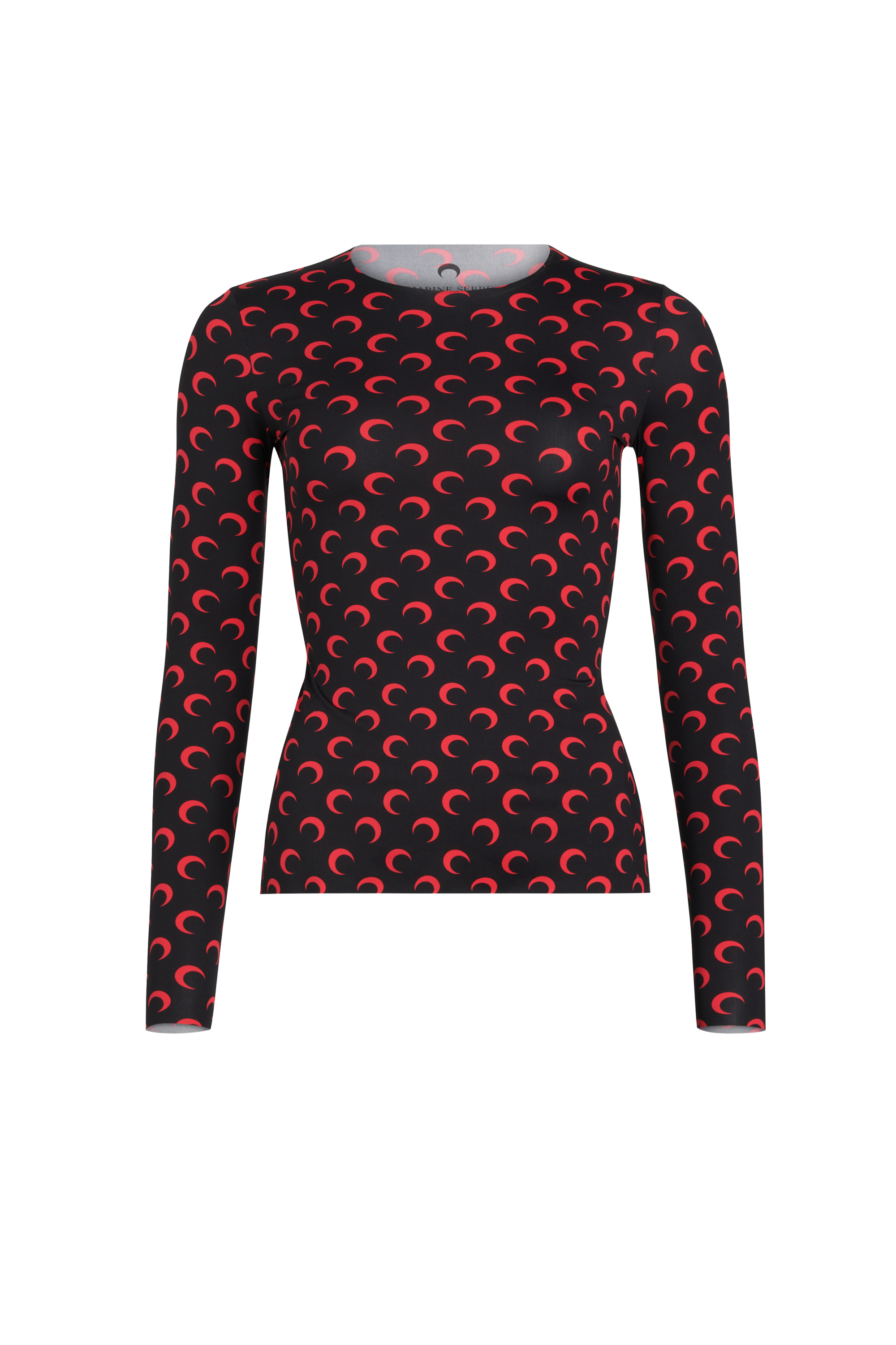 The Second Skin Moon Top is a standalone basic and an essential layering piece in Marine Serre’s collection. Made from soft, recycled jersey (GRS certified) it features sleek laser-cut finishing. Materials All Over Moon Jersey Red Marine Serre’s Borderline groups all the essential layering pieces synonymous with the brand. Through a body-conscious approach, these accessible pieces sheathe the body in the shape of second skins or casual t-shirt archetypes. 88% Recycled Polyamide, 12% Recycled Elastane