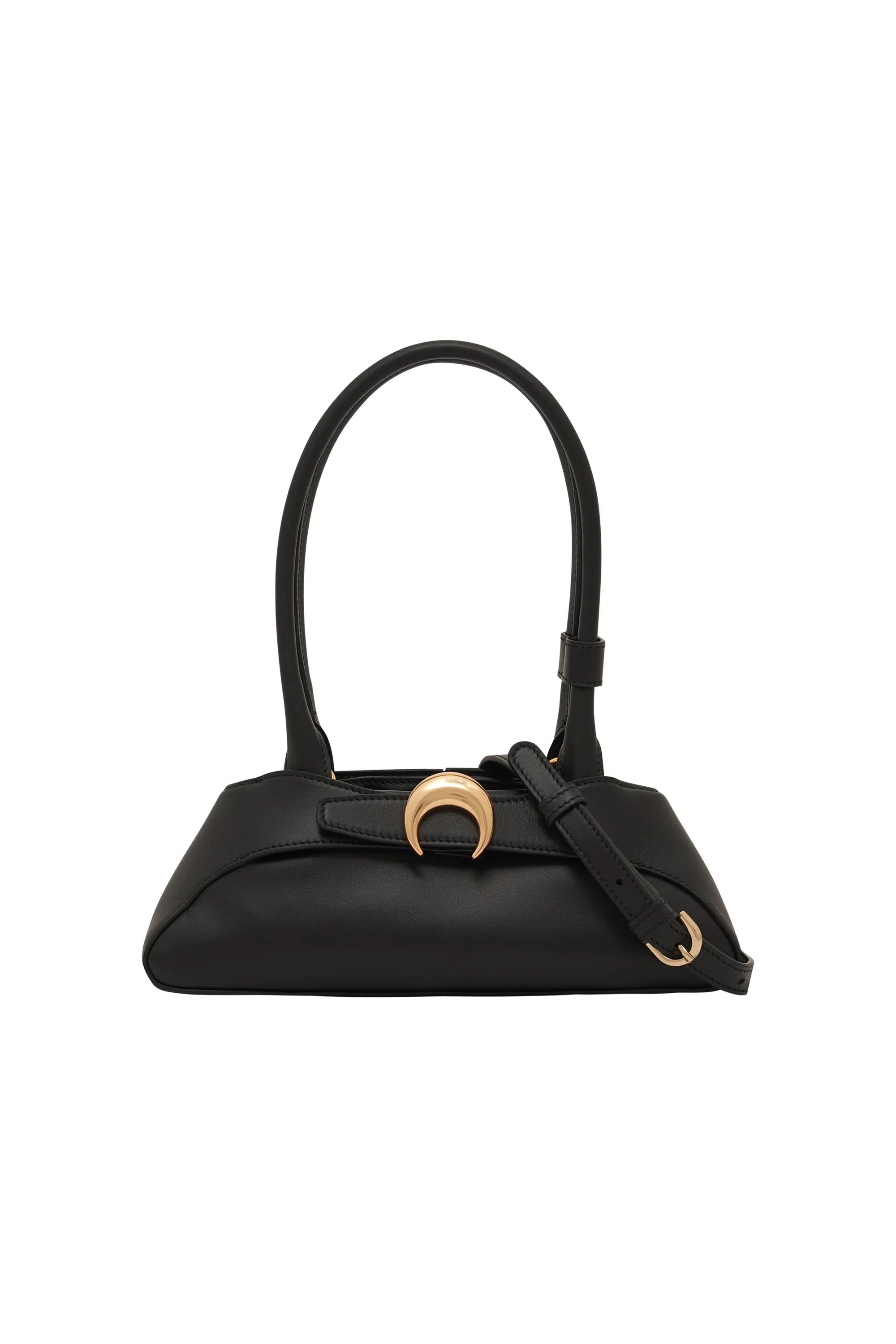 - Magnetic snap closure - Signature moon jacquard lining - Marine Serre leather patch Materials Black Smooth Leather Crafted in smooth nappa leather, made in italy for a premium and durable finish. Features a white elevated crocodile-effect embossed leather with a subtle shiny finish. Structured silhouette with a subtle trapeze shape for a strong identity. Wide, accentuated handle designed for comfortable and confident shoulder carry. 100% COS - Lining: 100% PL