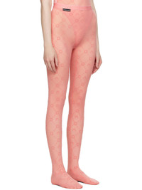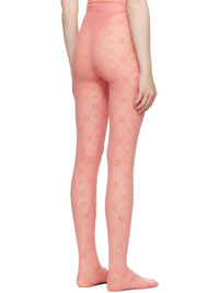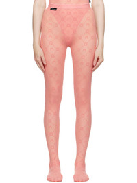 Semi-sheer stretch recycled nylon mesh tights in pink. · GRS-certified nylon · Logo pattern flocked throughout · Logo-woven elasticized waistband · Logo flag at front · Integrated feet Available exclusively at SSENSE. Supplier color: Moonogram flamingo pink 86% recycled polyamide, 14% elastane. Made in France 251020F085008