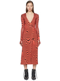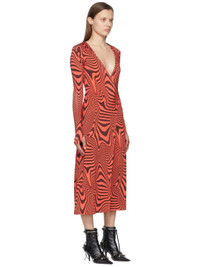 Stretch viscose bonded jersey robe. Graphic pattern printed throughout. · Hooded · Open front · Self-tie belt at waist Available exclusively at SSENSE. Supplier color: Red 93% viscose, 7% elastane. Made in France 222020F581000
