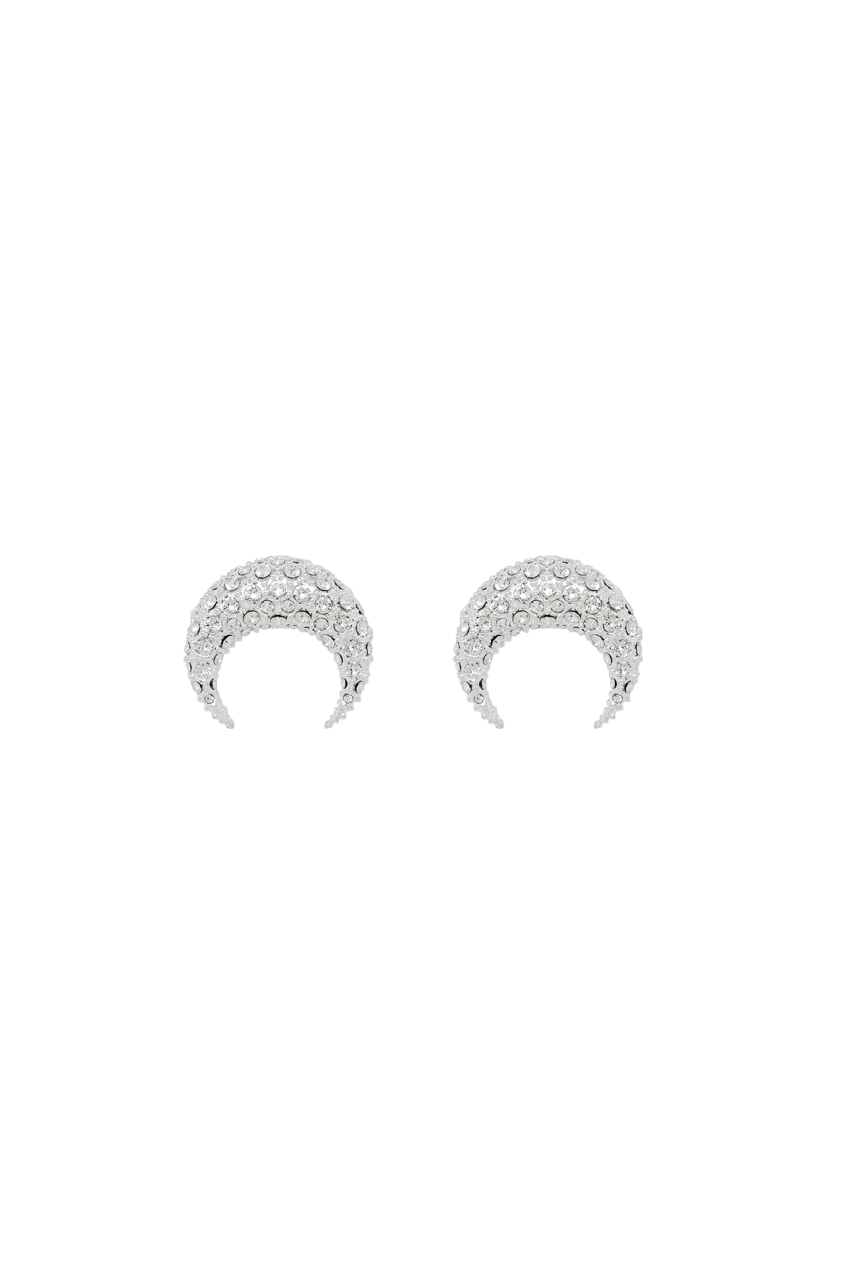Metal inlaid with Swarovski crystals Round clasp Logo engraved inside earring and clasp25 x 25 mm Materials Silver Recycled Brass 100% Recycled Brass