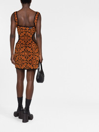 Towels cut-out minidress Marine Serre spotlights its focus on circularity with this minidress. It’s upcycled from jacquard towels to a sculpted silhouette that’s punctuated by rounded cut-outs. Highlights - Sunset orange/black - Cotton - Cut-out detailing - Square neck - Concealed rear zip fastening - Sleeveless - Straight hem - Thigh-length Made in Italy Composition Outer: Cotton 100% Lining: Cupro 50%, Viscose 50% SIZE & FIT Model measurements Height 5 ft 10 in(1.77 m) Bust/Chest 32.28 in(82 cm) Hips 35.03 in(89 cm) Waist 25.19 in(64 cm) Measurement HIPS 37.2 in(94.5 cm) LENGTH 32.67 in(83 cm) WAIST 31.49 in(80 cm) FittingInformation Designed for a close fit throughout Made from a midweight non-stretch fabric This piece fits true to size – take your usual size Washing instructions Hand Wash