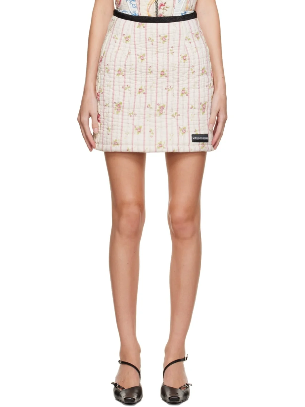 Upcycled quilted plain-woven cotton skirt. Floral pattern printed throughout. · Paneled construction · Textile logo patch at hem · Concealed zip closure at back · Full satin lining Each item is unique. Please note that coloration and finishings may vary. Supplier color: Multicolor Body: 100% cotton. Lining: 62% recycled polyester, 38% polyester. Made in Italy 222020F090002
