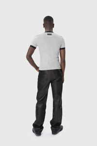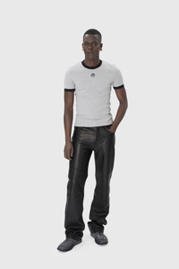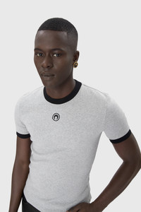 Fitted crewneck t-shirt with short sleeves Product Detail - Ribbed neckline and cuffs - Contrasted finishings - Moon logo embroidered under neck in front - Branded label woven under neck in back Composition and Traceability Product details page relating to environmental qualities or characteristics MTT088B CJER0008 GR50 GREY Composition: 100% Cotton Traceability: Weaving, Dyeing, Manufacturing: Turkey
