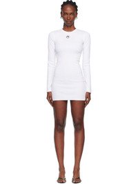White Moon Logo Ribbed Jersey LS Crewneck Minidress