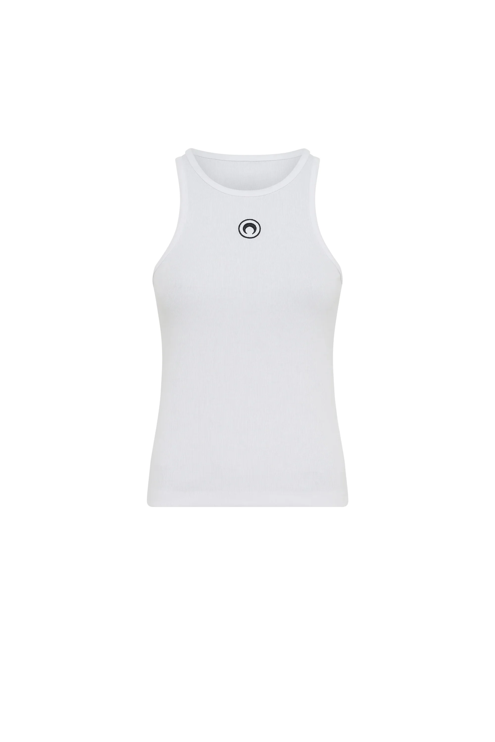 - Ribbed neckline - Moon logo embroidered under neck in front - Branded label woven under neck in back Materials White Organic Cotton All of the cotton that Marine Serre sources for the BORDERLINE collection is certified GOTS (Global Organic Textile Standard). This certification is the worldwide leading textile processing standard for organic fibers and provides credible assurance of responsible manufacturing with the least chemical inputs. In terms of shapes, the House proposes a wide range of everyday styles taken directly from the sportswear universe. 100% Cotton (GOTS Certified)