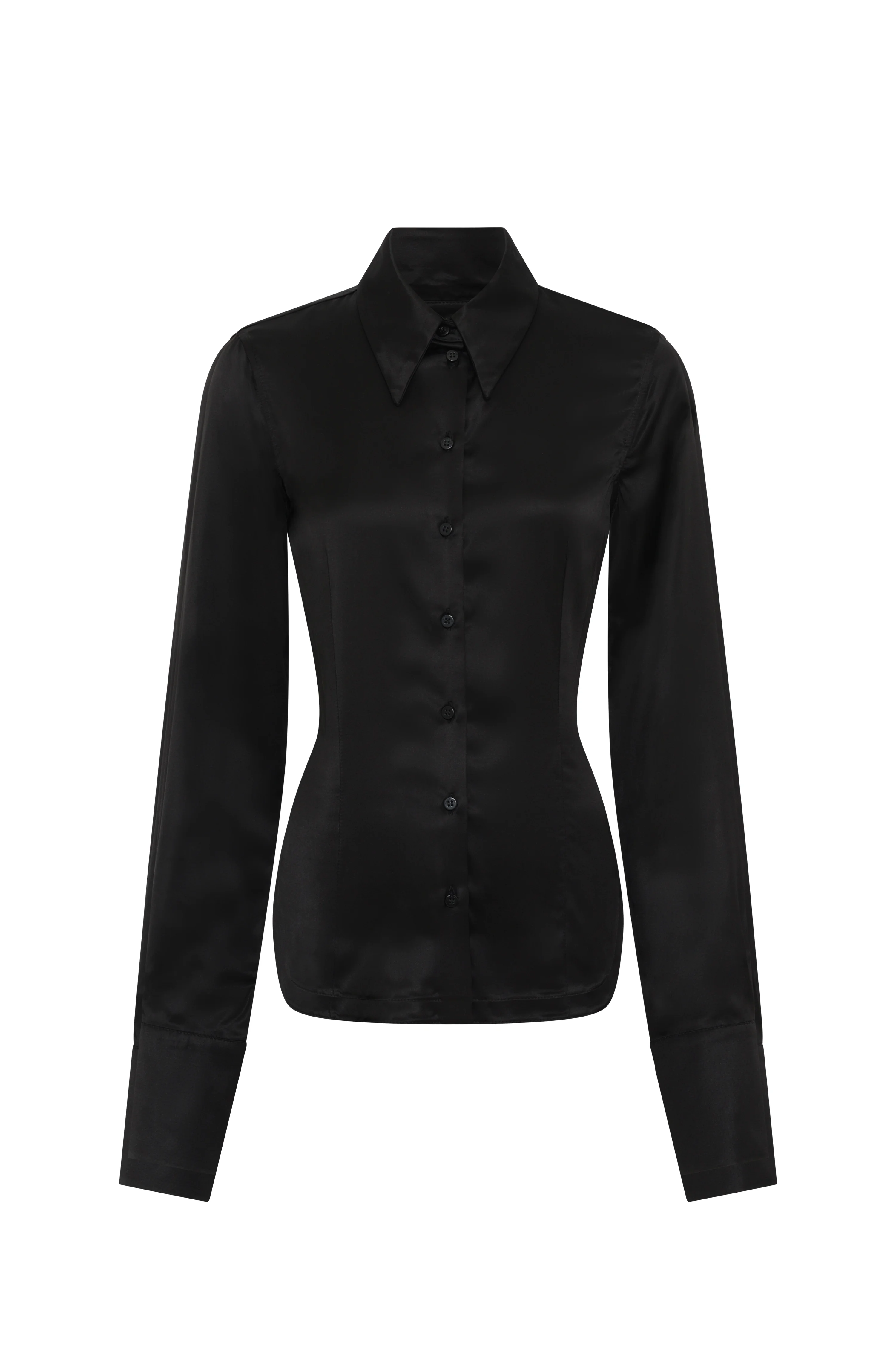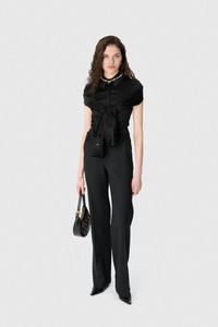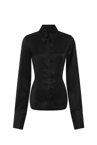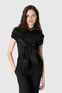 Fitted regular length shirt with a shirt collar and short sleeves Product Detail - Buttoned front - Set-in sleeves with back holes - Double button cuffs - Woven logo label - Opened sleeves that can be attached on the chest Composition and Traceability Product details page relating to environmental qualities or characteristics WSI031A CWOV0056 BK99 BLACK Composition: Main Fabric: 100% Viscose Traceability: Weaving/Dyeing: Italy Manufacturing: Romania
