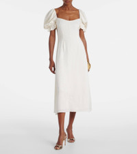 Special events call for charming designs like the Aila cocktail dress from Markarian. Made from ultra-soft silk jacquard, this style comes in an A-line silhouette and is complete with puff sleeves and tie detailing at the back. Product Details - Material: 100% silk - Care instructions: dry clean - Made in the USA - Designer color name: White - Item color: white - Lining: 100% viscose - Closure: zip and hook fastening - Self-tie back - Fully lined - Item number: P01052005 Size & Fit - True to size - Low back - Cinched waist - Non-stretchy fabric - The model seen in the picture is 178cm-5'10" and wearing a size US 4