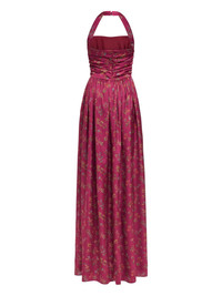 Anastasia floral ruched halter dresse Highlights - Raspberry - Floral print - Ruched detail - Halter neck - Sleeveless - Belt Made in United States Composition Outer: Polyester 100% Lining: Silk 100% Washing instructions Dry Clean Only