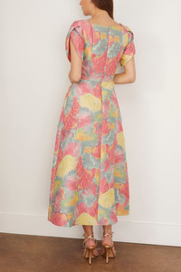 Astrid Square Neck Midi Dress with Petal Sleeve in Sherbert Floral Brocade