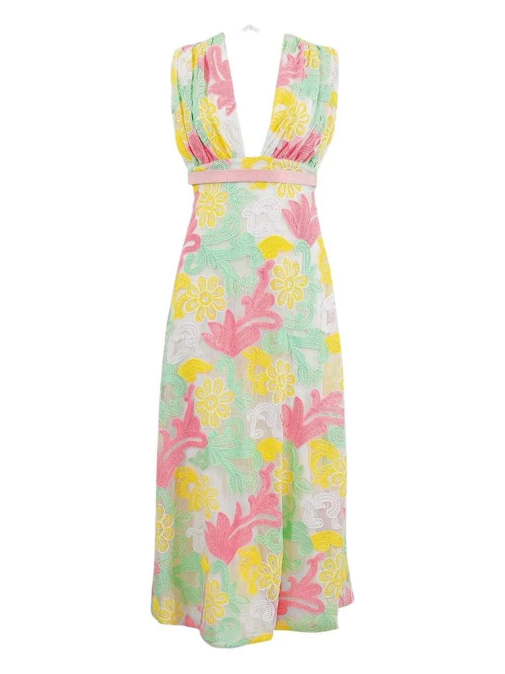 Aura floral-lace midi dress Highlights - Yellow and multicolour - Floral embroidery - V-neck - Sleeveless - A-line skirt - Tie fastening Imported Composition Fabric 100% Washing instructions Read Manufacturer Guidelines