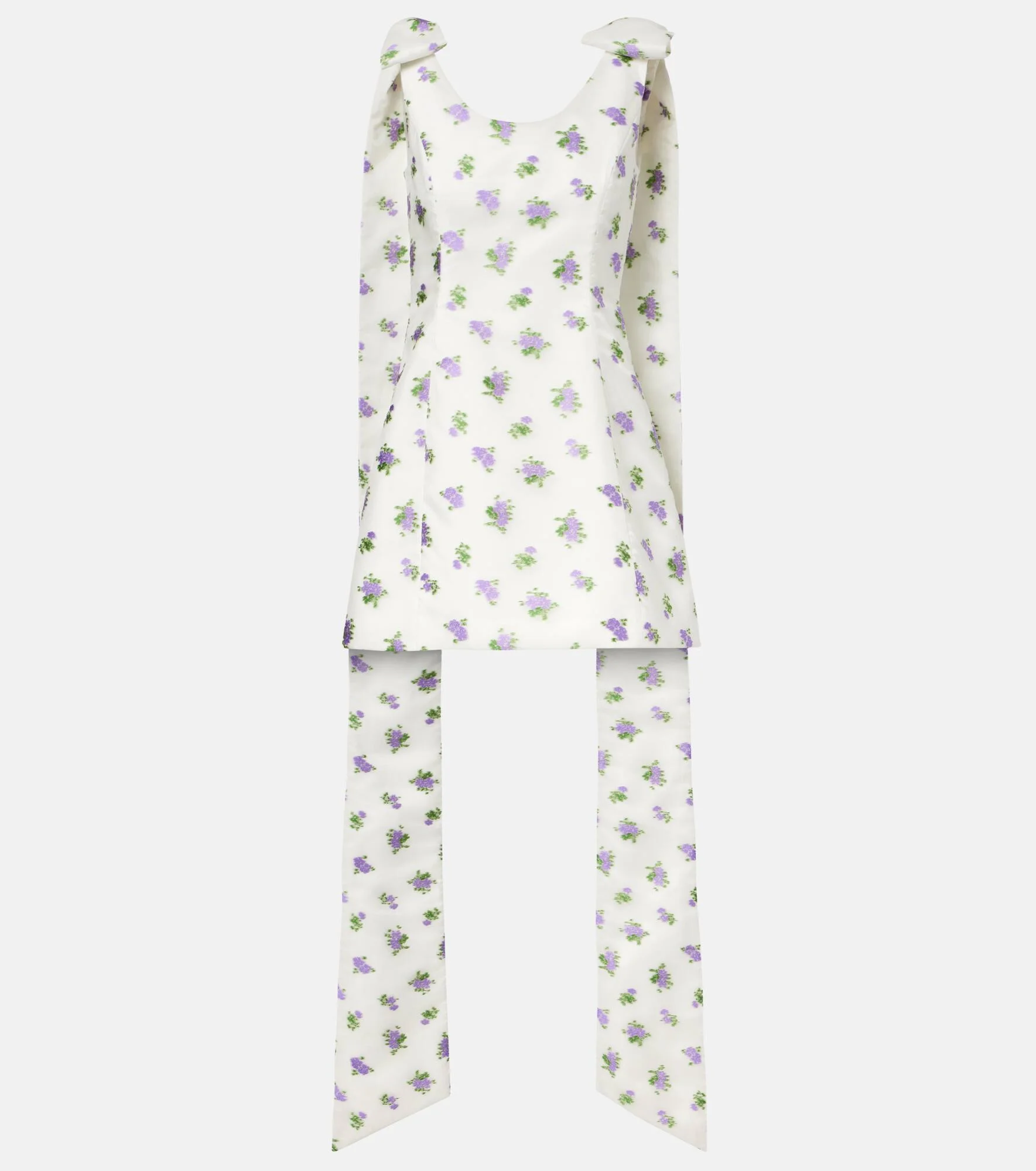 Bow-detail floral caped brocade minidress
