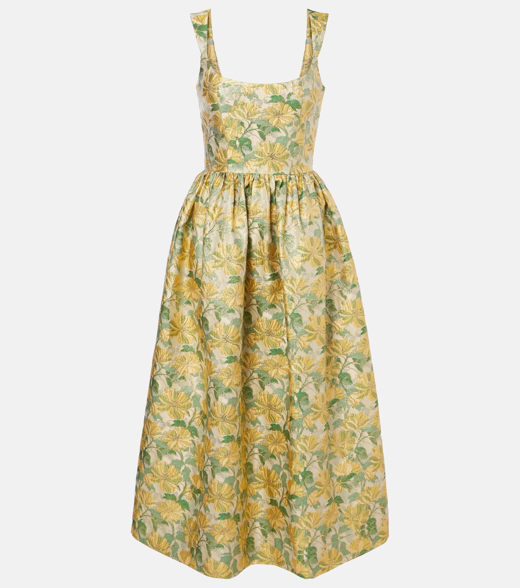 Product Details - Material: 60% polyester, 20% metallic fibres, 20% nylon - Care instructions: dry clean - Made in the USA - Designer color name: Green/Yellow Metallic Floral - Closure: invisible zipper, zip and hook fastening - Lining: 100% silk - Item number: P00995415 Size & Fit - True to size - Low back - Internal laced corset for support - Cinched waist - Non-stretchy fabric - The model seen in the picture is 178cm-5'10" and wearing a size US 4