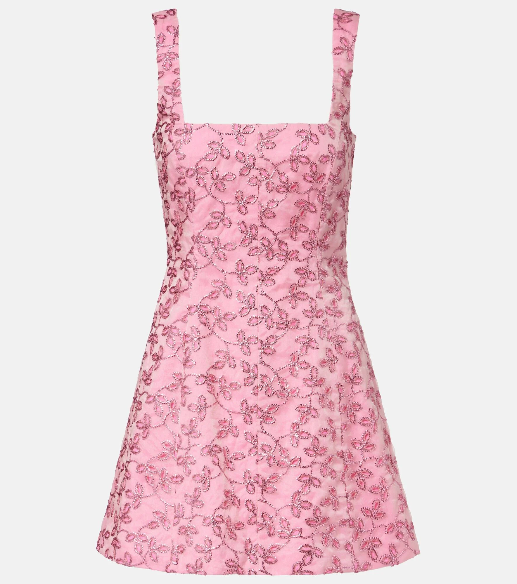 Markarian channels celestial glamour through couture-level silhouettes, intricate embellishment, and a distinctly romantic perspective. The floral sequined minidress is designed with a concealed back zipper and hook fastening. Product Details - Material: 100% nylon - Care instructions: dry clean - Made in the USA - Designer color name: Pink Floral - Item color: pink - Lining: 100% cotton - Closure: concealed zipper, zipped back, hook-fastening back - Item number: P01052017 Size & Fit - True to size - Cinched waist - Non-stretchy fabric - The model seen in the picture is 178cm-5'10" and wearing a size US 4