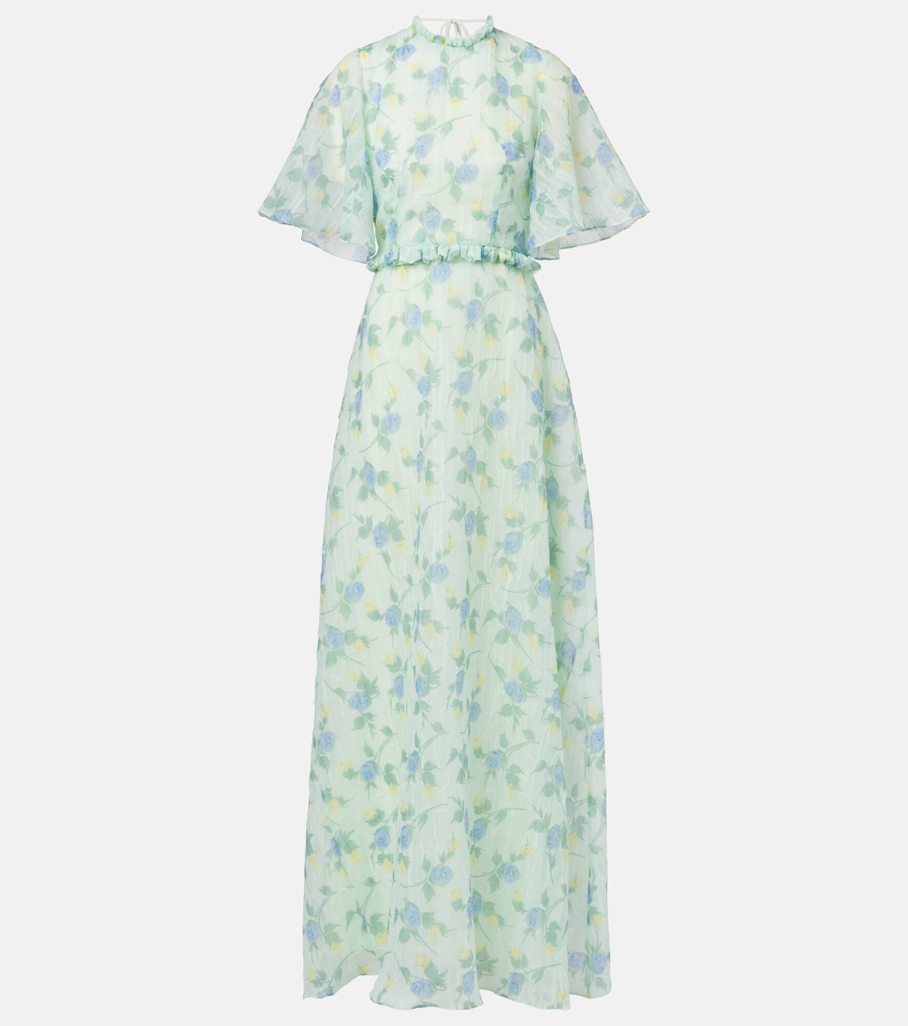Named after a cluster of lustrous galaxies, Markarian infuses every design with a sense of wonder and inspiration. The Heather gown is made from floral organza with flutter sleeves and dainty ruffle trims. Product Details - Material: 57% nylon, 43% polyester - Care instructions: dry clean - Made in the USA - Designer color name: Blue/Green - Item color: green, multicolor - Lining: 100% silk - Item number: P01023235 Size & Fit - True to size - Low back - Cinched waist - Non-stretchy fabric - The model seen in the picture is 178cm-5'10" and wearing a size US 4