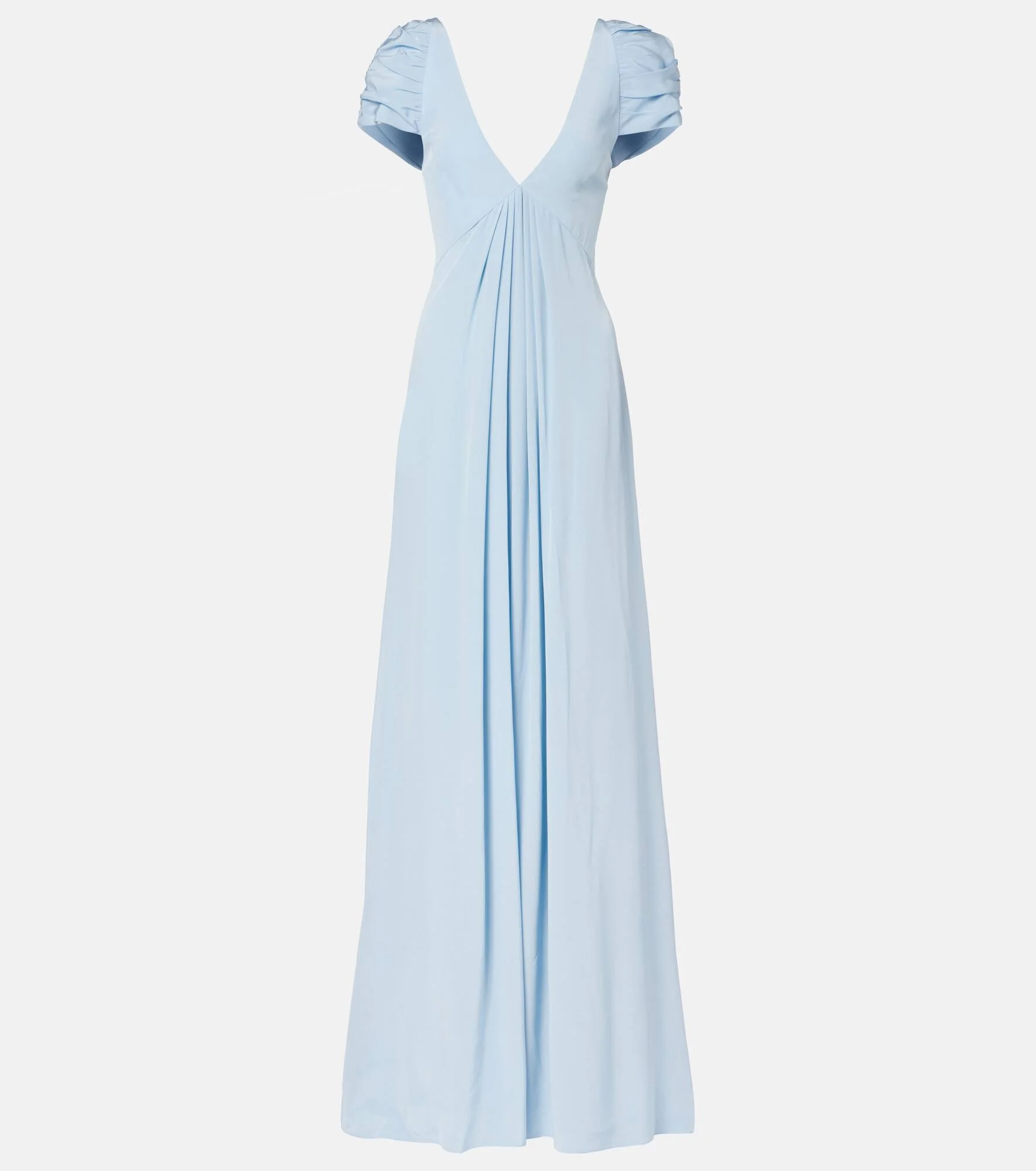 Romantic, ethereal, elegant – that’s the winning formula for Markarian. This gown is crafted from breezy silk and features a flattering V-neckline, shoulder trains, and a zip closure at the back. Product Details - Material: 100% silk - Care instructions: dry clean - Made in the USA - Designer color name: Ocean Blue - Item color: blue - Lining: 100% silk - Collar: V-neck - Closure: zipped back - Fully lined - Item number: P01052019 Size & Fit - True to size - Cinched waist - Non-stretchy fabric - Underwired top with removable padding - Height of model is 179cm-70.5" and wears a size US 4