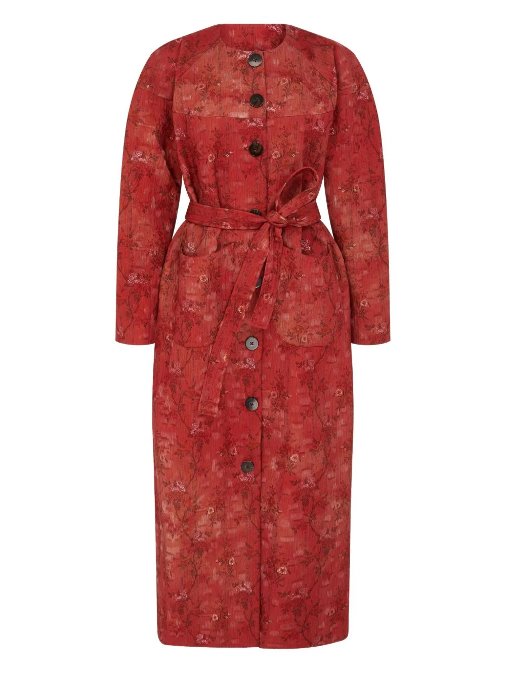Tilda brocade rounded sleeve coat Highlights - Red - Floral print - Button fastening - Belt - Rounded sleeves - Brocade finish Made in United States Composition Outer: Cotton 98%, Polyester 1%, Nylon 1% Lining: Silk 100% Washing instructions Dry Clean Only