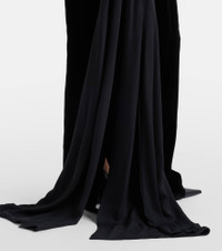 The Vesper gown from Markarian is a minimalist design finished with a theatrical silk georgette shawl and train. Falling to the floor length into a column silhouette, the elegant design is rendered in black. Product Details - Material: 82% rayon, 12% silk, 6% other fibers - Care instructions: dry clean - Made in the USA - Color: black - Designer color name: Black - Item color: black - Lining: 100% silk - Boning - Closure: invisible zipper - Item number: P01141040 Size & Fit - Fits large to size - we recommend trying one size smaller - Low back - Cinched waist - Loose outer layer - Non-stretchy fabric - slit length 76cm-30" - The model seen in the picture is 178cm-5'10" and wearing a size US 2
