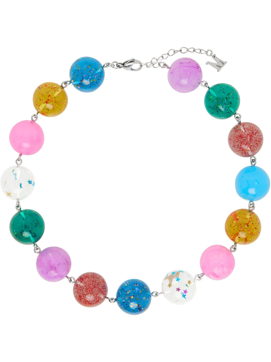 Cable chain necklace in stainless steel. · Multicolor resin beads throughout · Logo charm at adjustable lobster-clasp fastening · L17" Supplier color: Multi Stainless steel, resin. Made in Australia 252431F023013