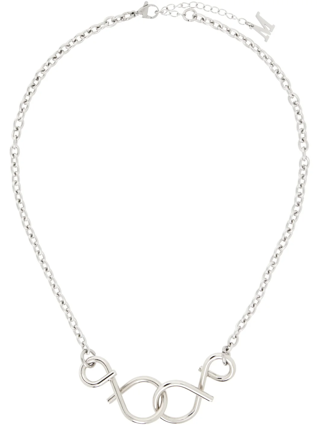Cable chain necklace in silver-tone stainless steel. · Graphic pendant · Logo charm at adjustable lobster-clasp fastening · L18" Supplier color: Silver Stainless steel. Made in Australia 252431F023002