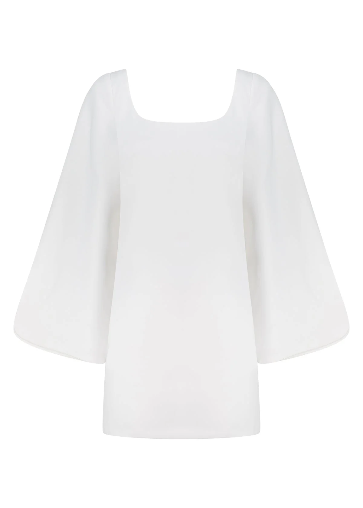 Exclusive to Marlies Grace, the Jane Dress in Seashell is an ode to the playfulness of the 1970s. A chic mini dress with statement bell sleeves in crepe satin. Details Fit: Relaxed, Buy your size