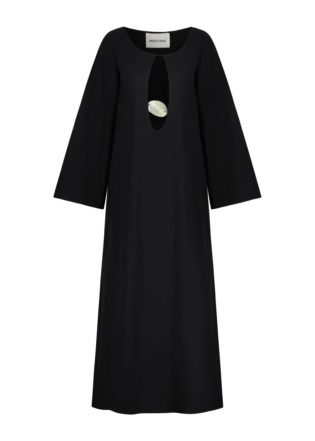 The Ocean dress is the perfect vacation dress with a maxi length and deep cut out right down the middle. The shell accessory has been sourced from artisans in India. You can wear the ocean dress over a swimsuit or for a beach dinner during a getaway. Details Fabric: 95% Cotton, 5% Lycra Color: Off White Size and Fit Model wears a size xs Relaxed fit; buy your size. Accessory to be handled with care.