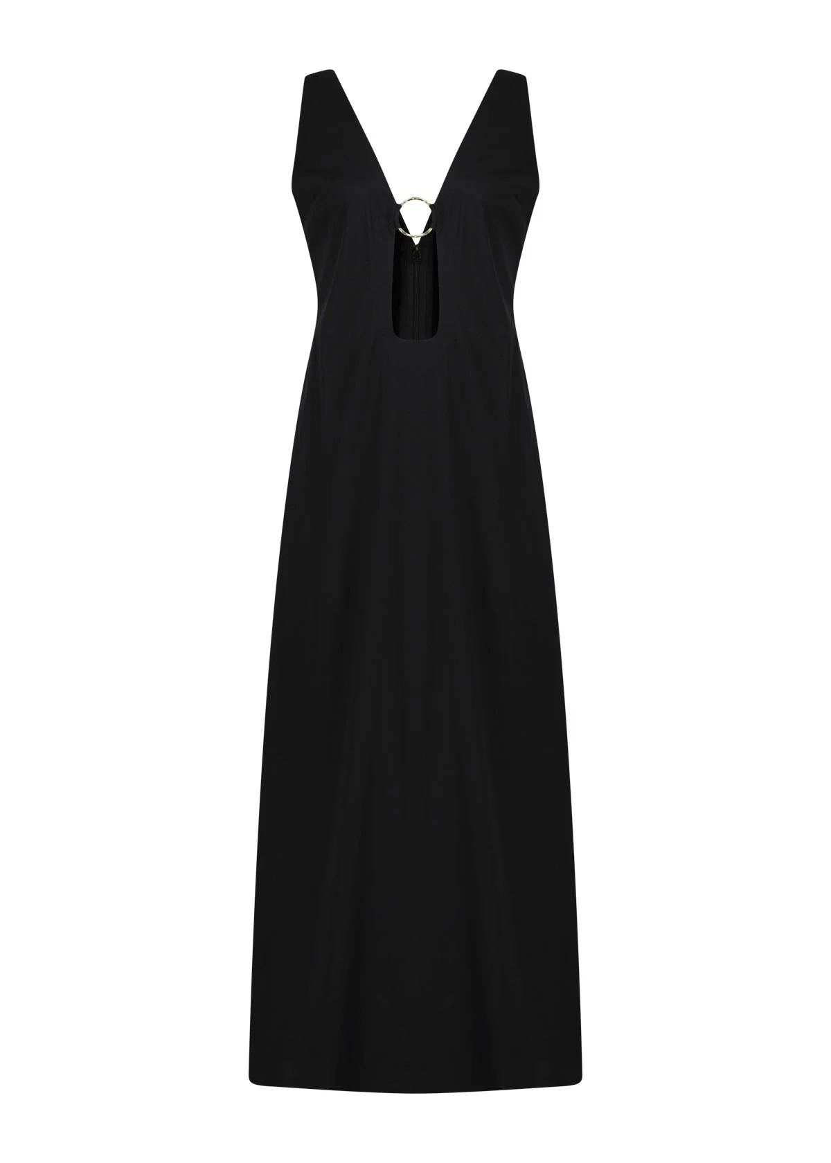 Sophisticated simplicity was the inspiration for the Stella Dress. This sleek, floor-length silhouette drapes the body with ease and comfort, while the keyhole front and gold ring hardware add something special. Details Fit: Relaxed, Buy your size