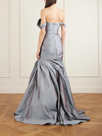 Marmar Halim's gown is a show-stopper for your next sparkling invite. Made from lustrous taffeta, it bares your shoulders beautifully and is gathered throughout to emphasize the '3D Blue' color. The fishtail skirt adds elegance to every step.