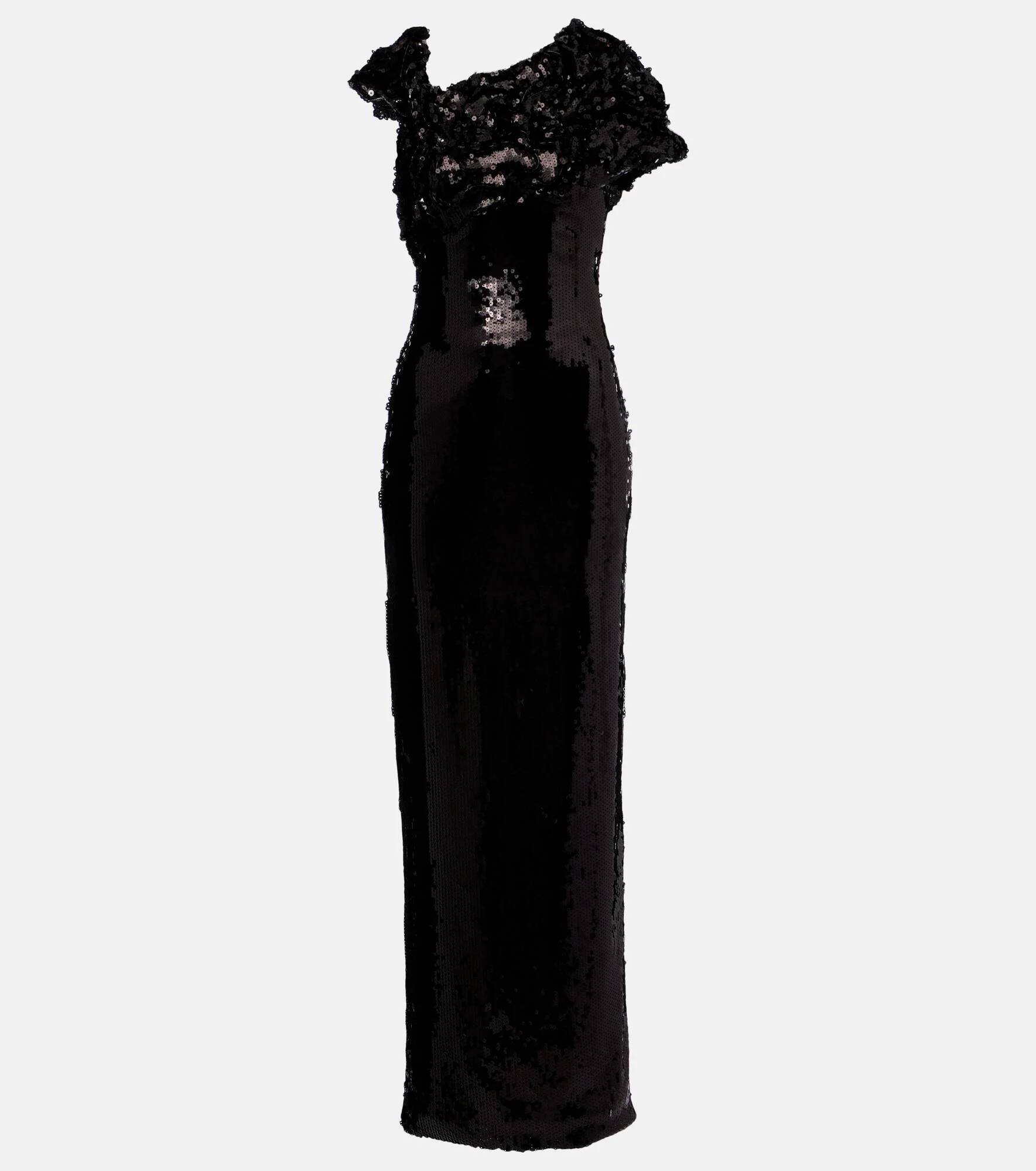 Bring an elegant edge to your next soiree with this gown from Marmar Halim. Crafted from a silk-blend, the fitted silhouette features an elegant asymmetric neckline and intricate all-over sequin detailing. Product Details - Material: 80% silk, 20% nylon - Care instructions: dry clean - Made in the United Arab Emirates - Designer color name: Black - Item color: black - Contains non-textile parts of animal origin - Item number: P01031067 Size & Fit - True to size - Internal corset with underwire support - Cinched waist - Non-stretchy fabric - slit length 60,0cm-23.5" - The model seen in the picture is 178cm-5'10" and wearing a size FR 36
