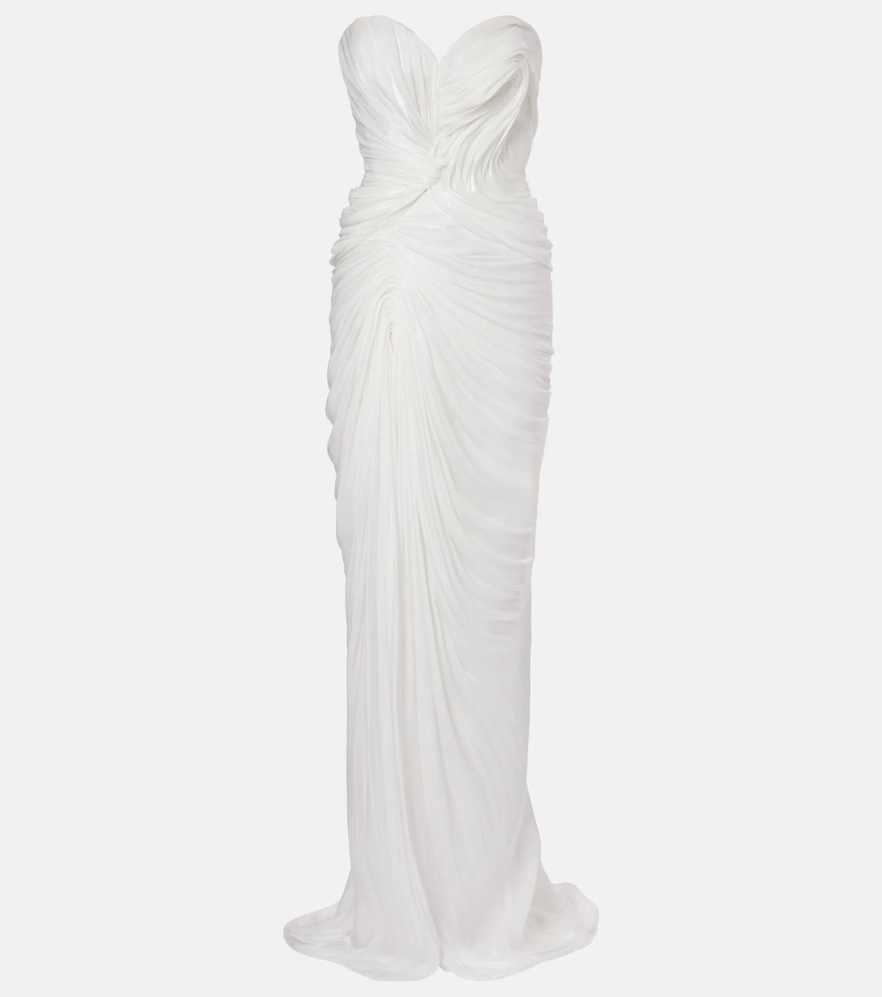 Celebrate special moments in unforgettable designs from Marmar Halim, like this bridal gown. This sophisticated silhouette is cut from a corset bodice and maxi skirt, which elegantly falls to floor length for a timeless appeal. Product Details - Material: 100% polyester - Care instructions: dry clean - Made in the United Arab Emirates - Designer color name: White - Item color: white - Closure: zipper, hook fastening - Boning - Item number: P01031059 Size & Fit - Fits small to size - we recommend trying one size larger - Strapless - Internal boned corset for support - Fitted - Non-stretchy fabric - The model seen in the picture is 178cm-5'10" and wearing a size FR 38
