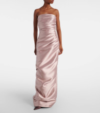 At Marmar Halim, you'll find elegant designs that make an impression. This bustier gown is a perfect example: crafted from blush pink satin, it comes with an elegant cape for endless styling possibilities. Product Details - Material: 100% polyester - Care instructions: dry clean - Made in the United Arab Emirates - Designer color name: Pink - Item color: pink - Closure: zipped back, hook-fastening back - Two-piece set - Boning - Underwired cups - Item number: P01077207 Size & Fit - Fits small to size - we recommend trying one size larger - Strapless - Internal corset with underwire support - Cinched waist - Non-stretchy fabric - The model seen in the picture is 178cm-5'10" and wearing a size FR 38