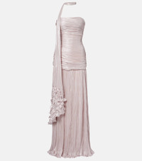 Merging rich Arab traditions and a modern vision, Egyptian designer Marmar Halim creates ethereal silhouettes with intricate details. The Dayana bustier gown showcases the brand' signature ruching and is accented by a detachable scarf that gracefully cascades on the side. Product Details - Material: 100% polyester - Care instructions: dry clean - Made in the United Arab Emirates - Color: pink - Designer color name: Pink - Closure: concealed zipped back - Boning - Built-in bustier - Underwired cups - Item number: P01124860 Size & Fit - True to size - Strapless - Internal corset with underwire support - Fitted bodice, loose skirt - Non-stretchy fabric - Padded top - The model seen in the picture is 178cm-5'10" and wearing a size FR 38