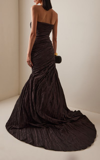 Strapless Crushed-Taffeta Gown brown