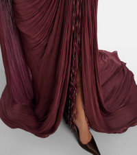 Draped pleated scarf-detail gown