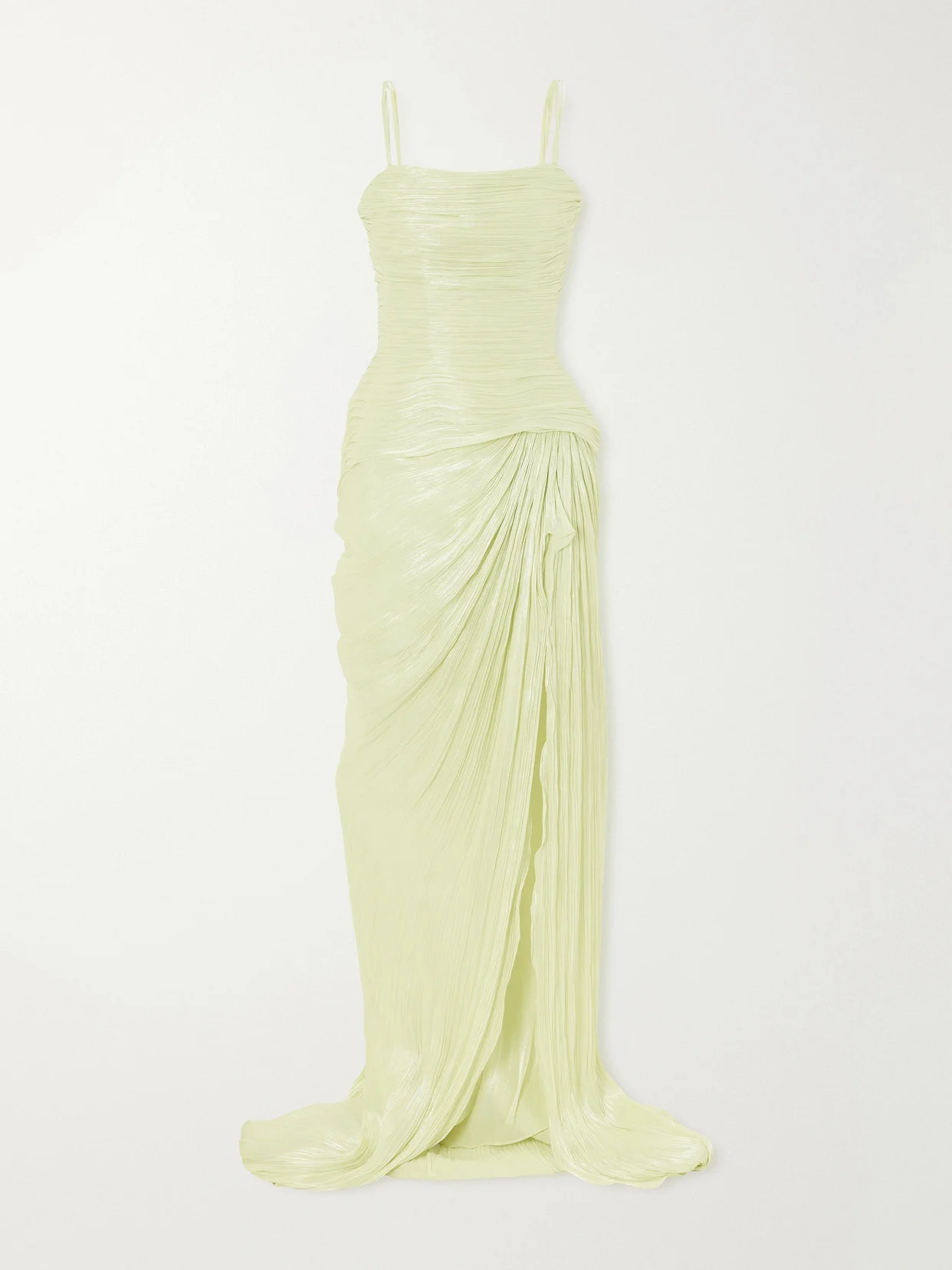 Marmar Halim gown is cut with a sleeveless neckline and softly draped bodice that skims the figure. The fluid silhouette falls through the hips to a floor-grazing hem, while a thigh-high slit adds movement and ease. Style it with delicate sandals for evening occasions.