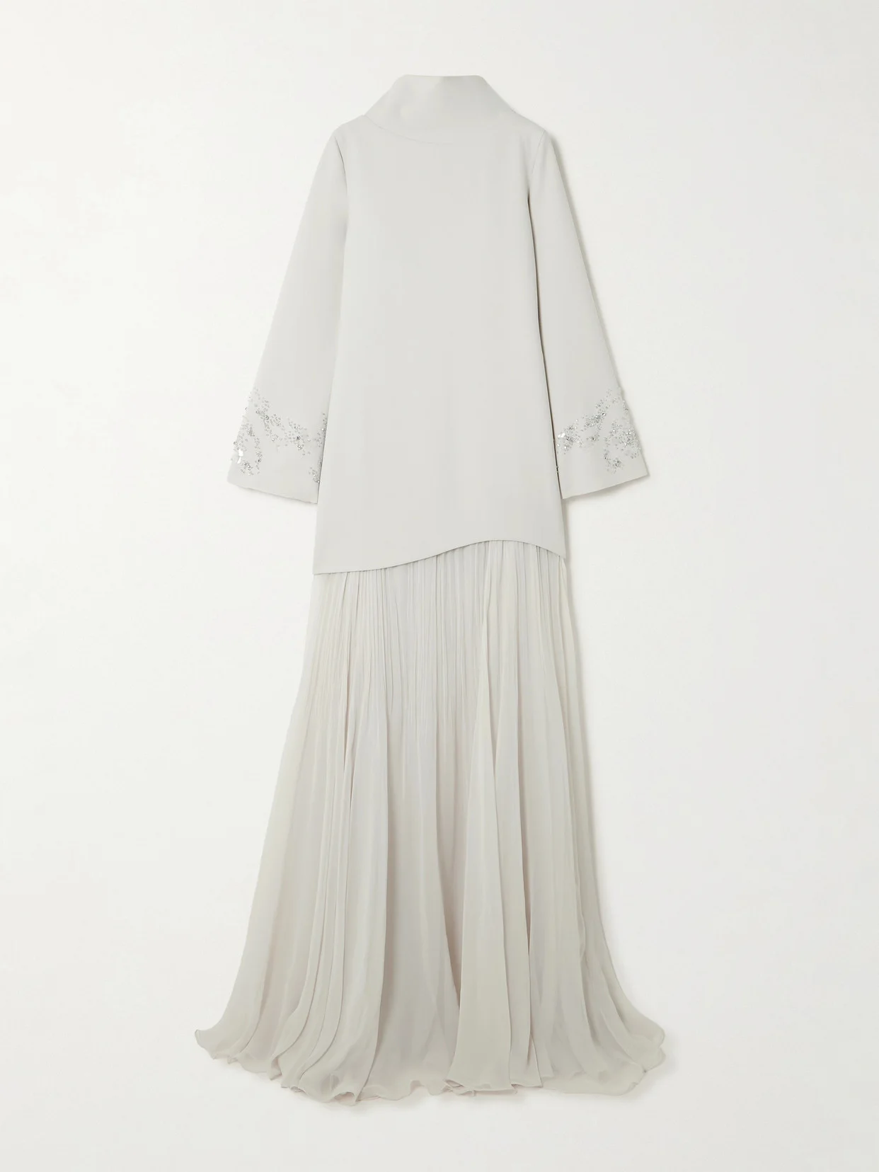 Layered Embellished Crepe And Plissé-georgette Gown
