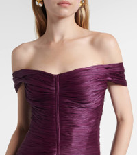 Celebrate special moments in unforgettable designs by Marmar Halim, like this glamorous gown. Crafted from elegant crepe, this style features an off-shoulder, corset top and a maxi skirt for endless styling possibilities. Product Details - Material: 100% polyester - Care instructions: dry clean - Made in the United Arab Emirates - Designer color name: Plum - Item color: purple - Underwired cups - Boning - Closure: concealed zipper, zipped back, hook-fastening back - Hem: shirred - Item number: P01077204 Size & Fit - Fits small to size - we recommend trying one size larger - Off-the-shoulder - Internal corset with underwire support - Cinched waist - Non-stretchy fabric - The model seen in the picture is 178cm-5'10" and wearing a size FR 38