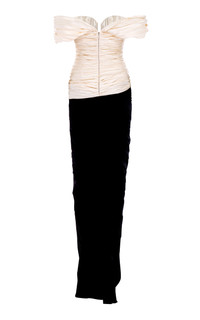 Off-The-Shoulder Mikado-Taffeta Gown black/white