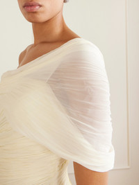 One-shoulder Draped Plissé-chiffon Gown