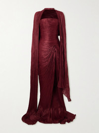 Strapless Plissé Silk-satin Gown And Cape