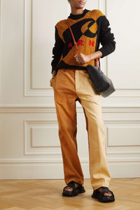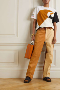 EDITORS'NOTES Designed in collaboration with utilitarian workwear specialists Carhartt WIP, Marni's pants are expertly tailored from contrasting panels of corduroy and cotton-canvas that are tactile-rich and boast years of longevity. They're arranged in a color-block design with a straight-leg fit that can be styled for a variety of occasions. Note the cute heart-shape button and hand-stitched logo. SIZE & FIT - Fits true to size, take your normal size - Pants measure high rise, however intended fit is to be worn loose and low on the hips - Mid-weight, non-stretchy fabric - Model is 180cm/ 5’11” and is wearing a size Small DETAILS & CARE - Tan corduroy, brown and cream cotton-canvas - Button and concealed zip fastening at front - 100% cotton - Machine wash