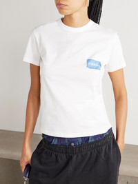 Marni's T-shirt is appliqued with a logo patch that looks as though it's been sewn on by hand for a DIY effect. It's made from organic cotton-jersey for a relaxed fit with a classic crewneck. Size & Fit - Fits true to size, take your normal size - Designed for a relaxed fit - Lightweight, non-stretchy fabric - Model is 177cm/ 5'10" and is wearing an IT 40 Model measurements: - Bust: 85cm/ 33.5" - Waist: 65cm/ 25.5" - Hip: 91cm/ 36" Details & Care - White and light-blue organic cotton-jersey - Slips on - 100% organic cotton - Machine wash - Designer color: Lily White