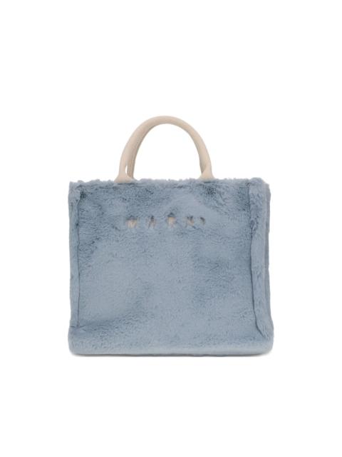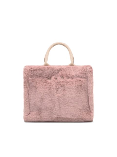 faux-fur top-handle tote bag Highlights - Light brown - Faux fur - Top handle - Detachable shoulder strap - Logo lettering - Rectangular shape Made in Italy Composition Polyester 100%