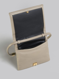 Prisma pouch crafted from smooth puffy leather, styled with a leather shoulder strap. Flap closure and vegan leather lining. Vintage gold hardware. Made in Italy. DETAILS COMPOSITION Body: 100% Calf Leather - Lining: 55% Cotton 45% Polyurethane - Padding: 100% Polyester - Metallic Parts: 100% Brass