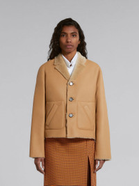 Short reversible shearling and nappa jacket. Collar can be worn standing or turned down. Front button fastening. Welt pockets on one side, patch pockets on the other. Made in Italy MODEL GIMX0187B0ULM09400W57 COMPOSITION 100%Lambskin Leather, Application 100%Cowhide Leather