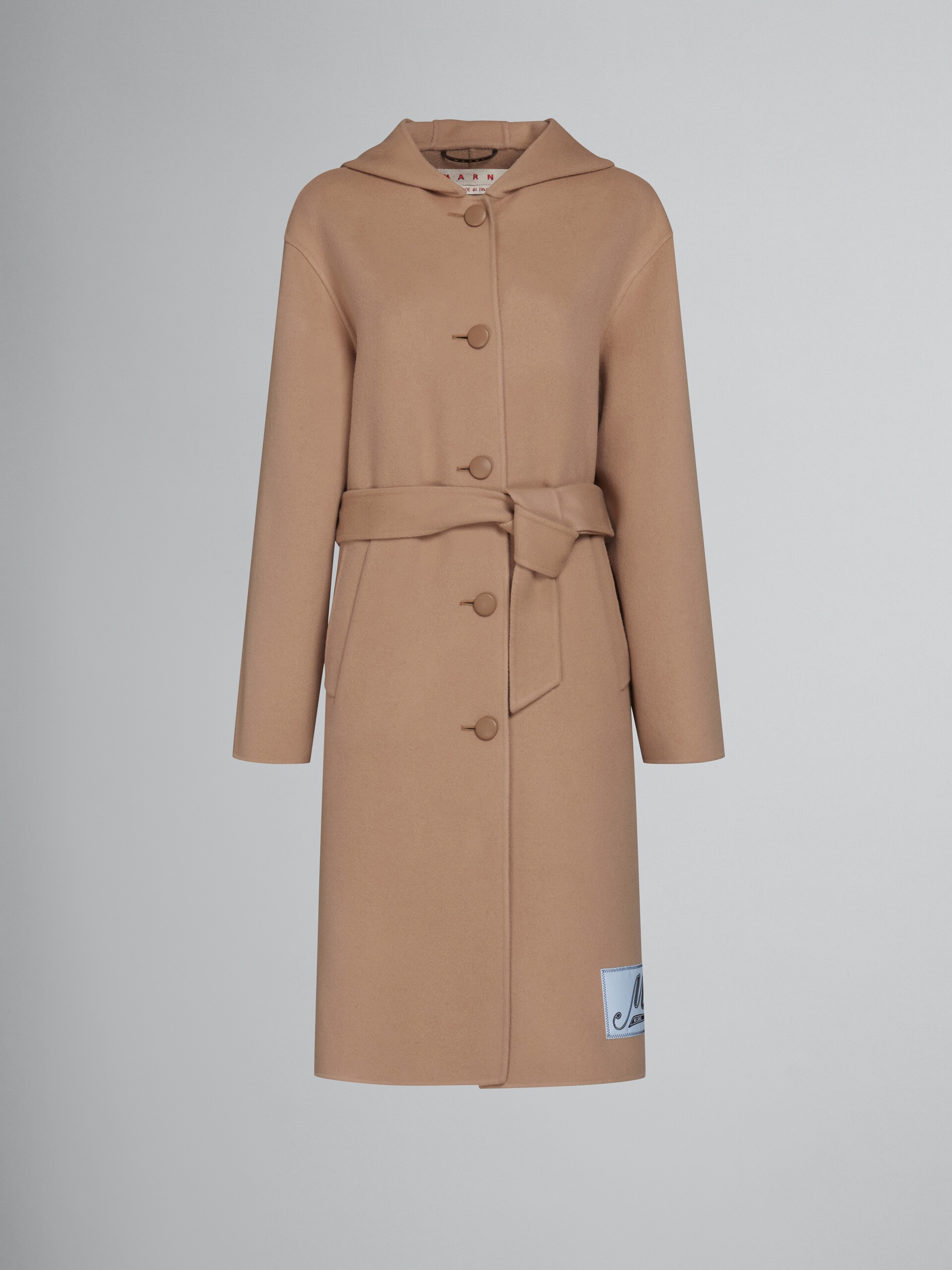 Hooded coat made from a double-sided virgin wool and cashmere blend. Relaxed straight-cut silhouette with deconstructed shoulders, waist belt, and side slits. Finished with leather buttons. Made in Italy MODEL CPMA0219CKTW84000W75 COMPOSITION 84% WVW 14% WSW 2% PAW