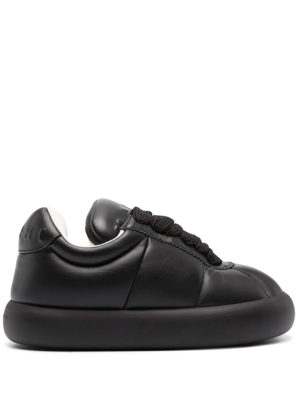 BigFoot 2.0 padded leather sneakers Named after their exaggerated padded silhouette, this black iteration of Marni’s BigFoot 2.0 sneakers speaks to the brand’s play with proportions. They’re crafted in Italy from smooth leather and grounded atop a chunky flatform sole. Highlights - Black - Calf leather - Padded design - Quilted - Tonal stitching - Zigzag-edge detailing - Logo-embossed tongue - Embossed logo to the rear - Round toe - Front lace-up fastening - Contrast lining - Mesh lining - Branded insole - Chunky rubber sole - This piece comes complete with a protective dust bag. Made in Italy Composition Leather 100% SIZE & FIT Measurement HEEL 1.57 in(4 cm) Sole height 0.98 in(2.5 cm)